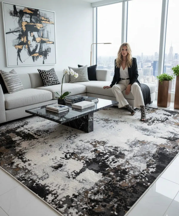 Anthracite Grey Beige Ivory Abstract Modern Living Room Bedroom Area Rug