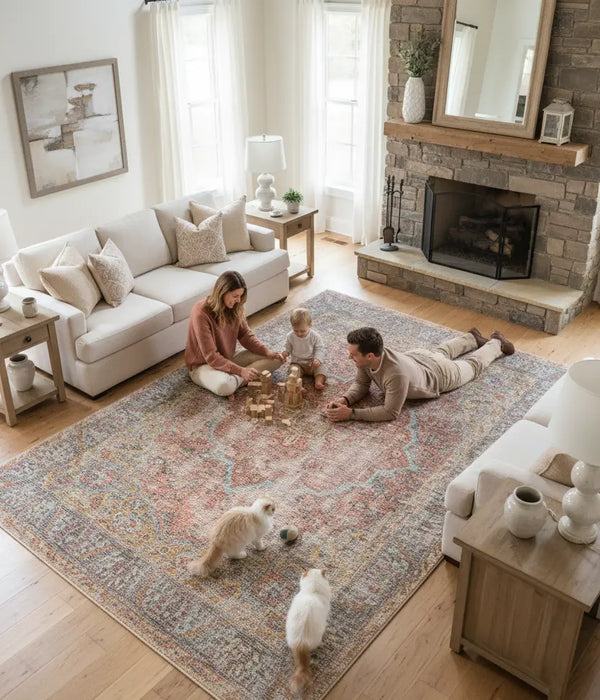 Bring cozy vibes to every room with our Turkish-made farmhouse rugs.
