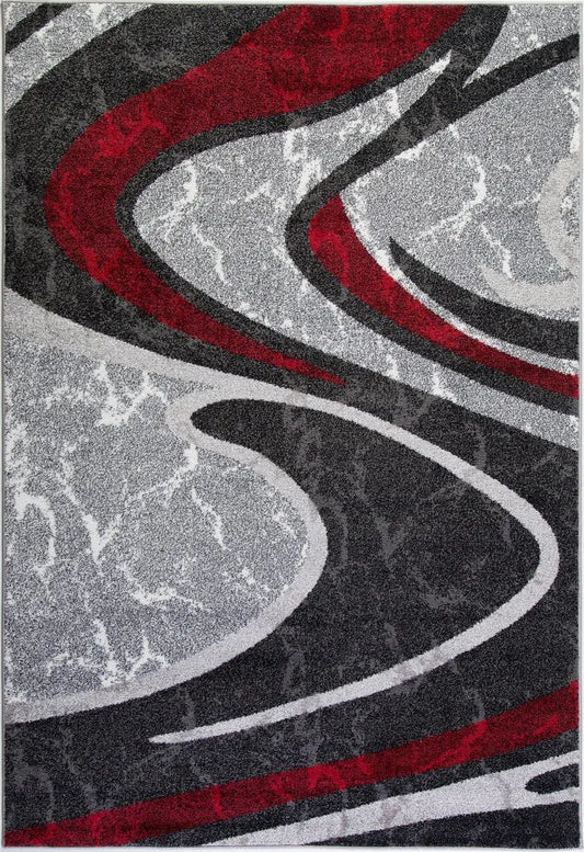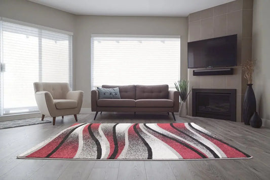Ivory Red Gray Waves Area Rug