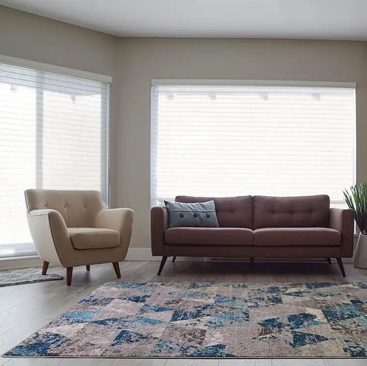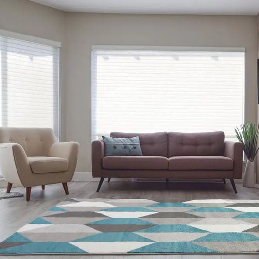 Kensington Teal Cream Grey Abstract Triangles Area Rug