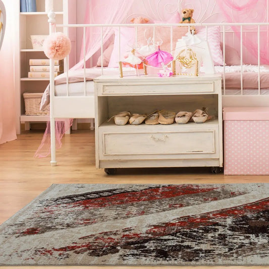 Copper Abstract Area Rug Grey Red