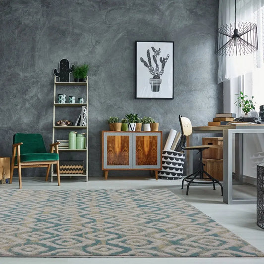 Clover Teal Cream Trellis Area Rug