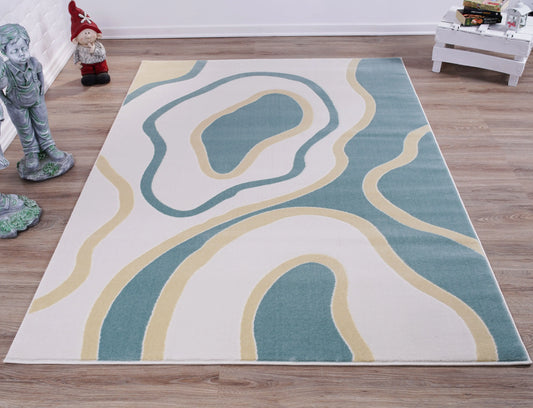 Light Blue Cream Yellow Abstract Area Rug
