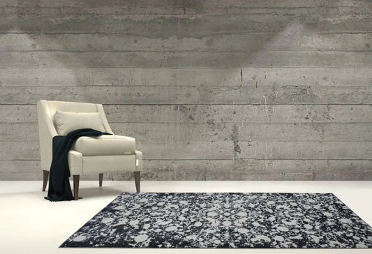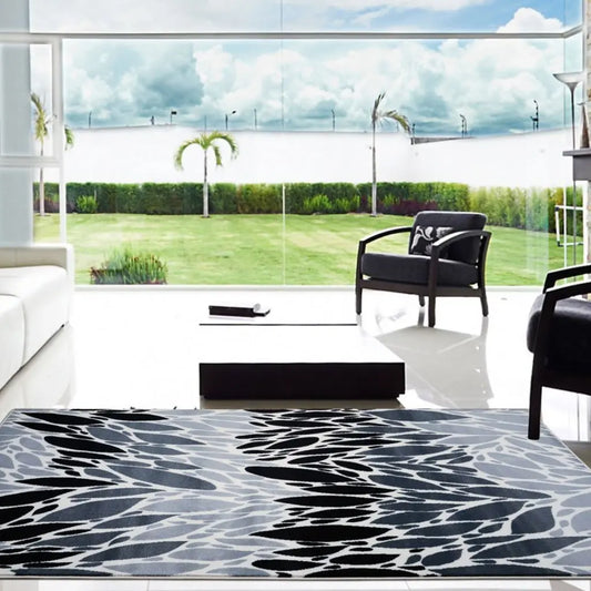 Grey Black Flower Area Rug
