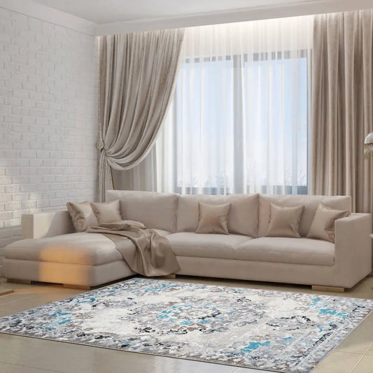 Kensington Teal Cream Grey Marble Area Rug