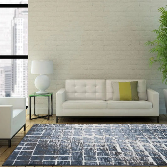 Oshawa White Grey Abstract Area Rug