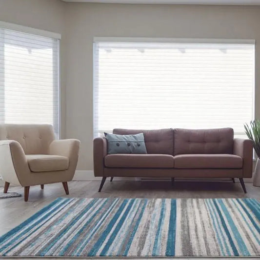 Kensington Teal Ivory Stripes Area Rug