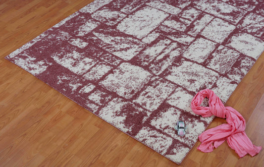 Cream Red Color Block Flowers Kids Area Rug