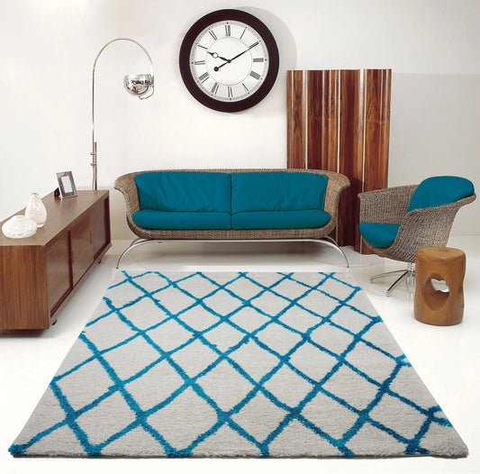Shaggy Moroccan Ivory Turquoise Area Rug