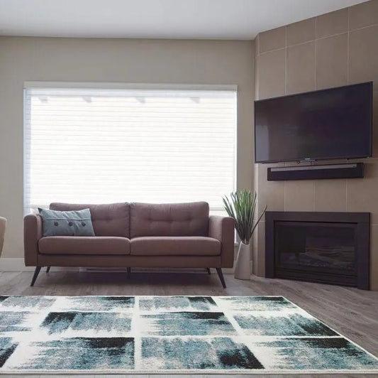 Kensington Teal Ivory Abstract Area Rug