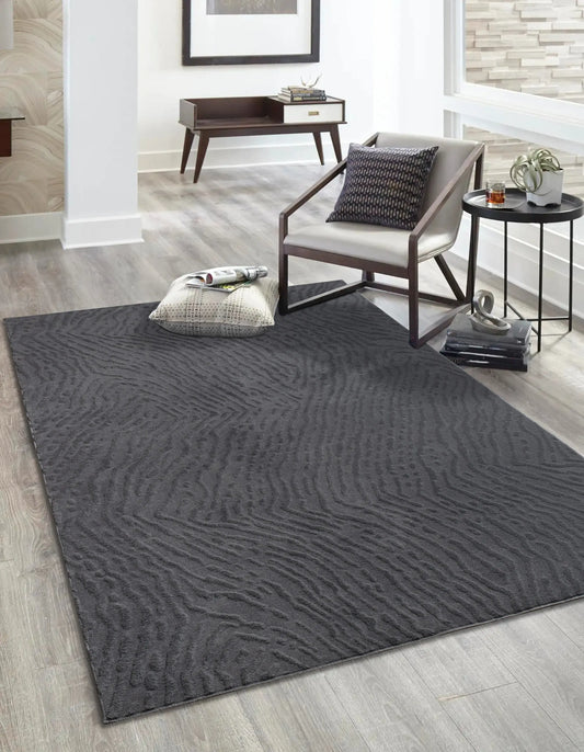 Anthrasite Grey Textured Fluffy Soft Machine Washable Area Rug For Living Room, Bedroom