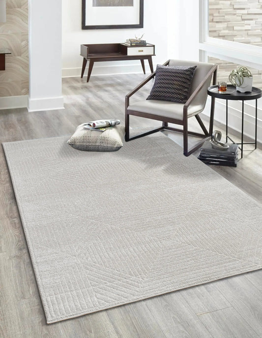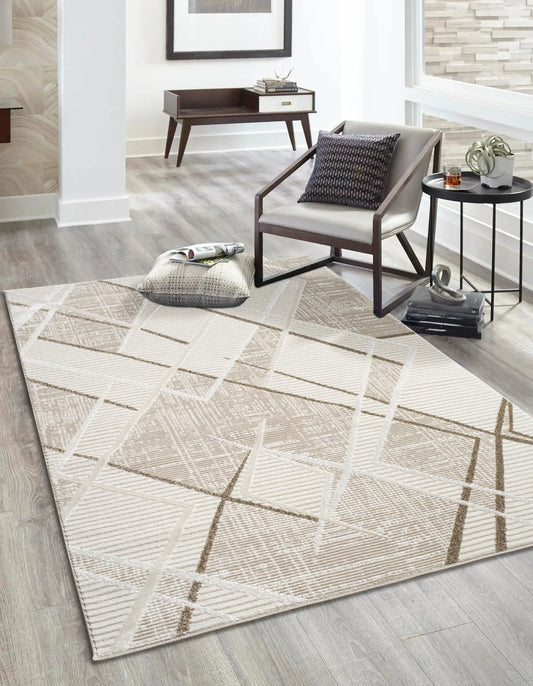 Cream Beige Textured Geometric Modern Living Room Bedroom Area Rug