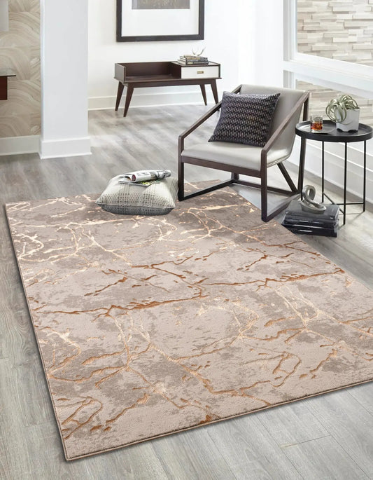 Copper Beige Luxury Abstract Living Room Bedroom Area Rug