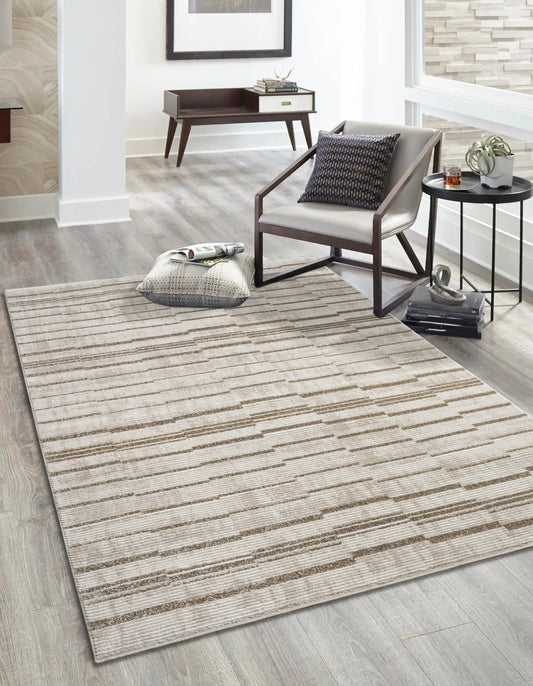 Beige Brown Abstract Striped Living Room Bedroom Area Rug