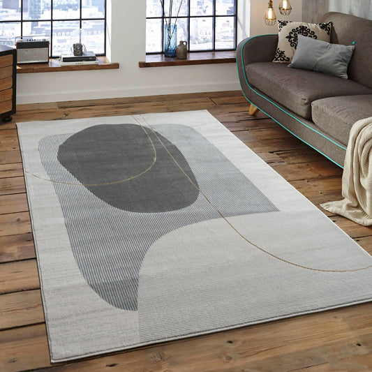 Anthracite Grey Beige Ivory Abstract Modern Living Room Bedroom Area Rug