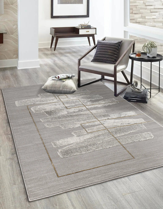 Grey Gold Abstract Luxury Modern Minimalist Contemporary Area Rug