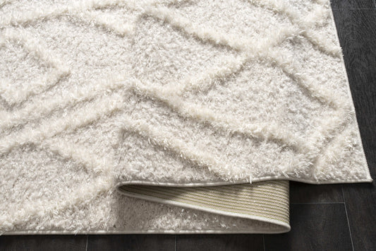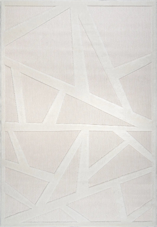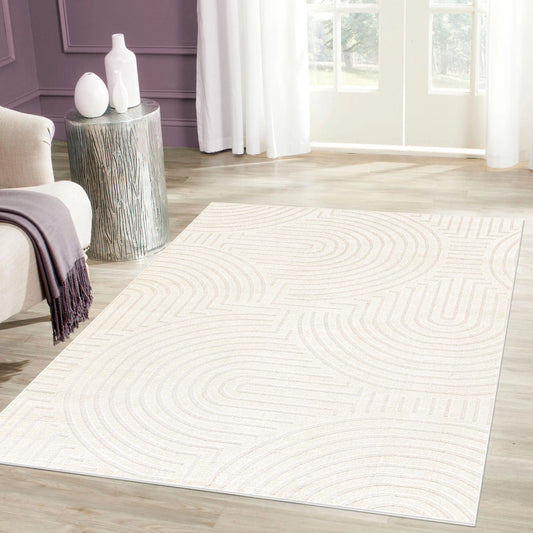 Ivory Cream Textured Geometric Living Room Bedroom Area Rug