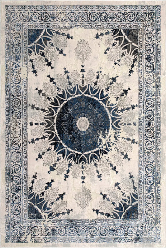 Blue Grey Ivory Traditional Bordered Living Room Bedroom Area Rug