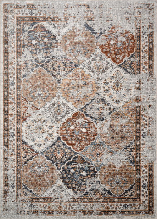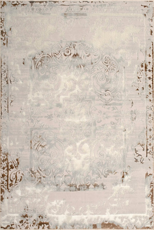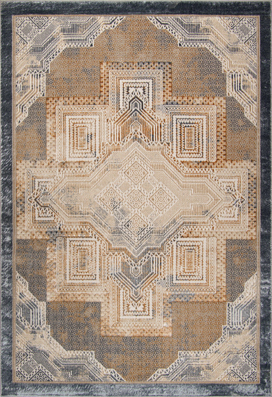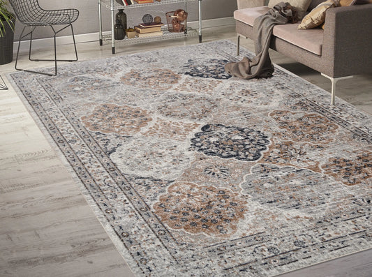 Beige Brown Silver Grey Metalic Traditional Geometric Contemporary Area Rug