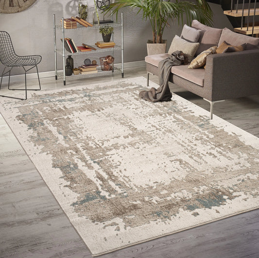 Grey Ivory Earth Abstract Living Room Bedroom Area Rug