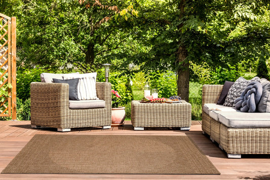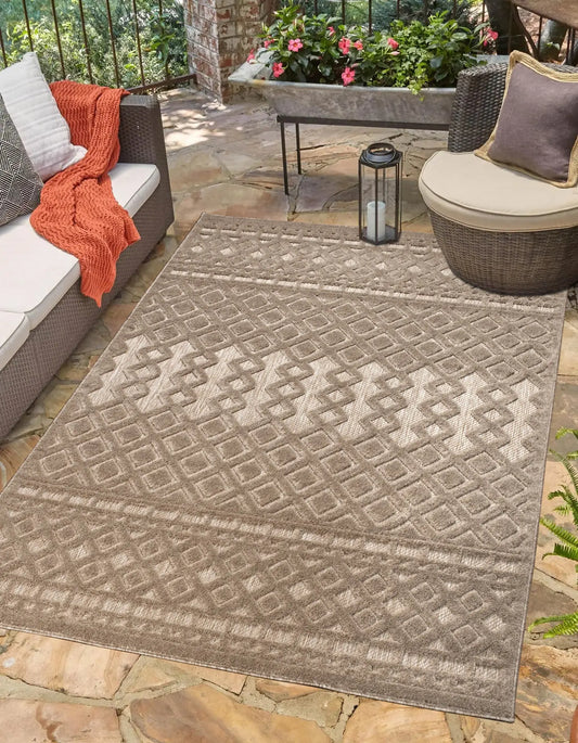 Geometric Modern Contemporary Outdoor Indoor Area Rug Carpet For Patio, Porch, Dining Area, Balcony, Living Room, Bedroom - Brown - Cream Beige