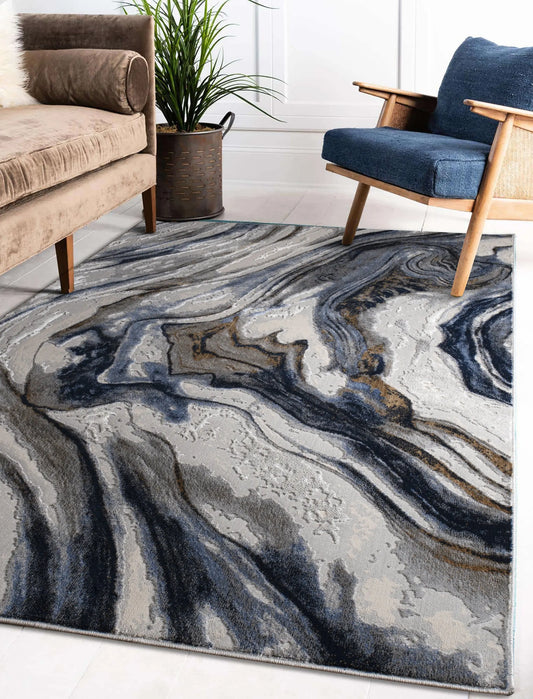 Azra Blue Abstract Contemporary Marble Minimal Design Area Rug