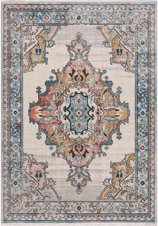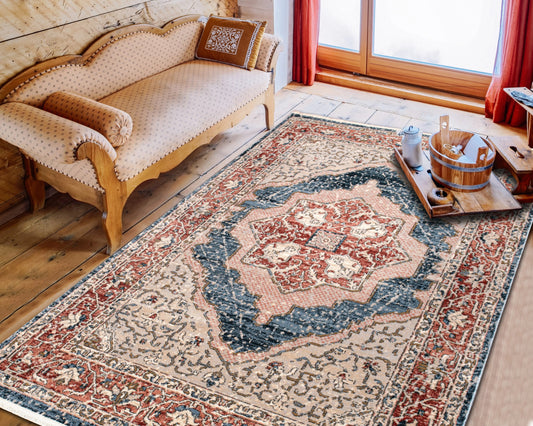 La Dole Rugs Traditional Persian Oriental Distressed Teal Turquoise Ivory Grey Red Orange Area Rug