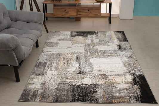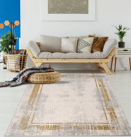 Gold Grey Abstract Modern Living Room Bedroom Area Rug