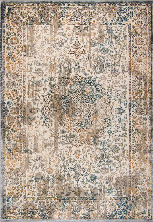 Ivory Beige Mustard Traditional Living Room Area Rug