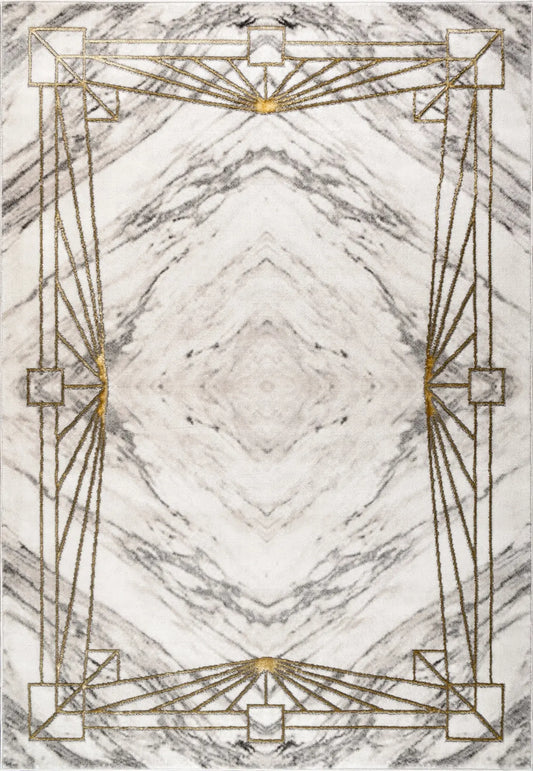 Gold Grey Geometric Modern Living Room Bedroom Area Rug