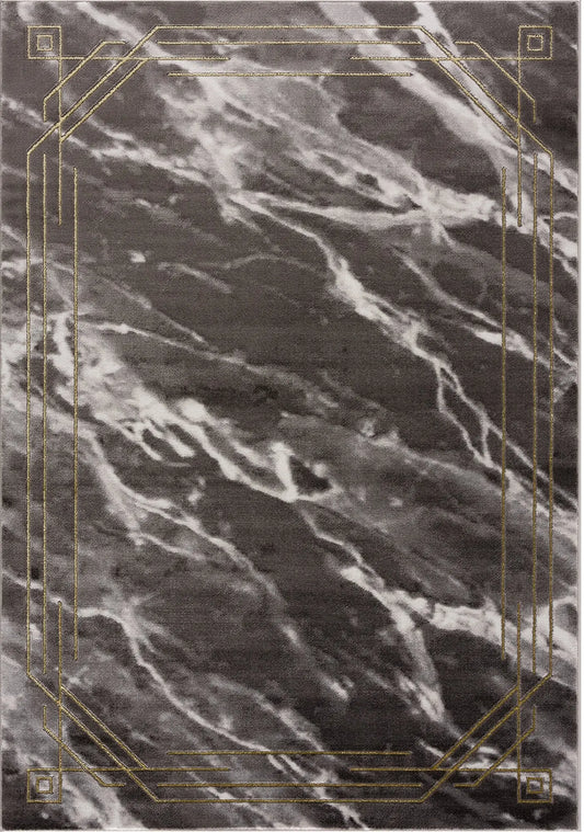 La Dole Rugs Modern Minimalistic Marble Pattern Abstract Rustic Grey Charcoal Gold Bordered Area Rug