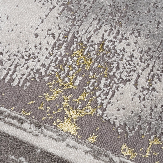 Gold Grey Abstract Modern Living Room Bedroom Area Rug