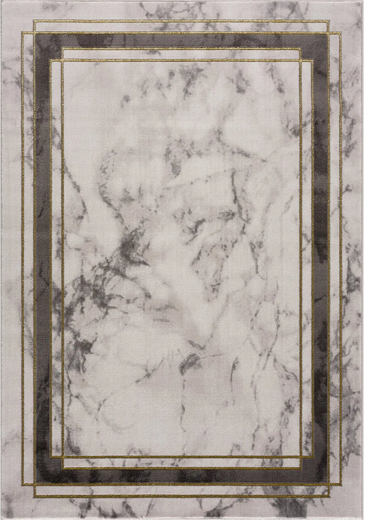 Beige Brown Grey Metalic Abstract Modern Contemporary Marble Pattern Bordered Area Rug