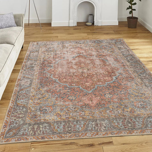 Terra Red Cotton and Polyster Machine Washable Traditional Rustic Area Rug