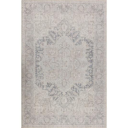 Grey Blue Medallion Cotton and Polyster Machine Washable Traditional Rustic Area Rug