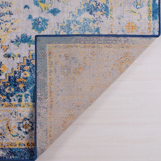 Grey Blue Medallion Cotton and Polyster Machine Washable Traditional Rustic Area Rug