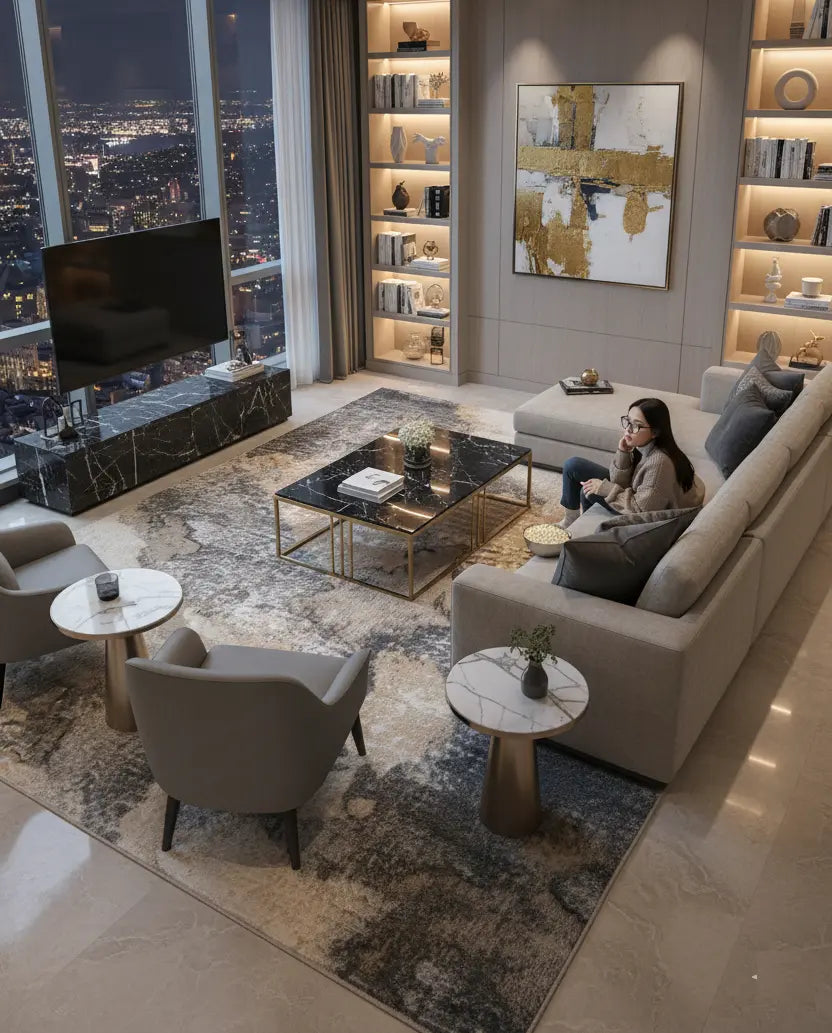 Beige Brown Silver Metalic Abstract Modern Minimalistic Contemporary Area Rug
