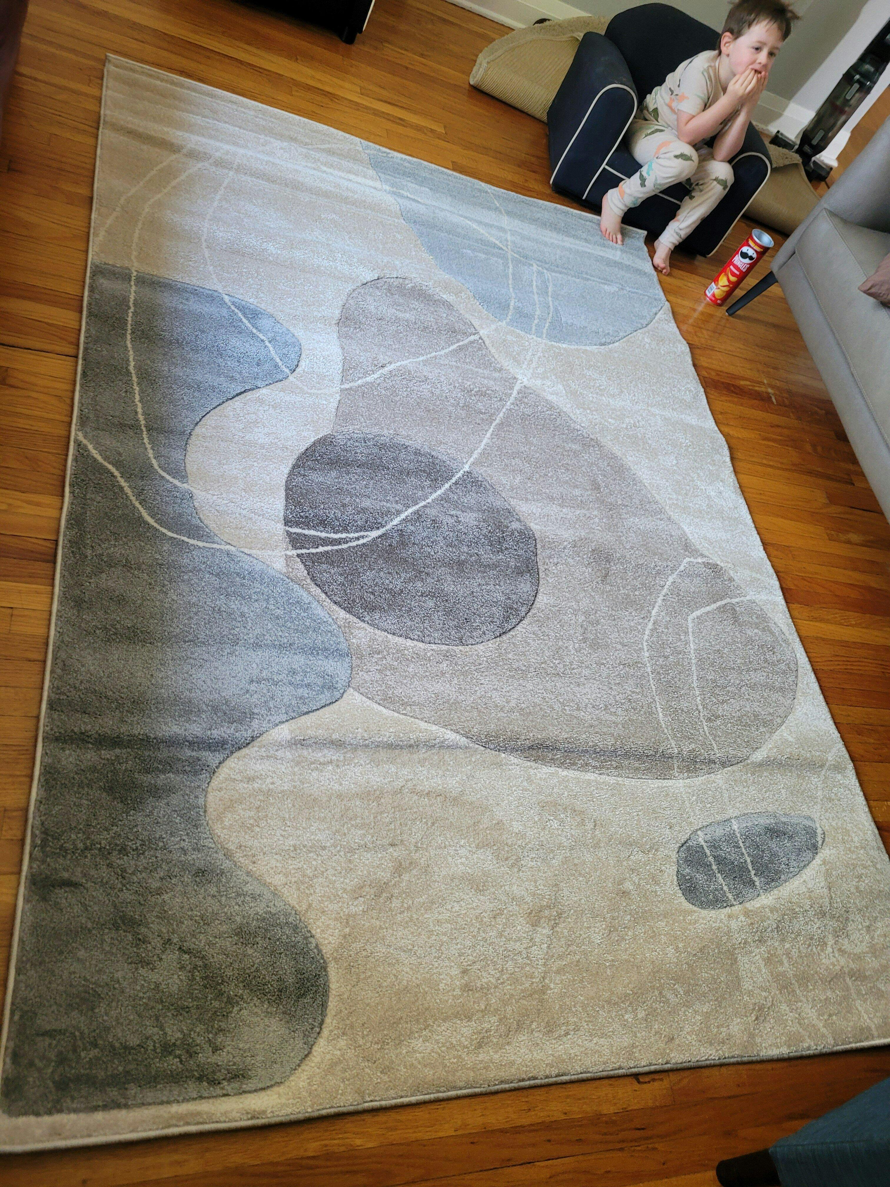 Blue Grey Beige Textured Abstract Living Room Bedroom Area Rug