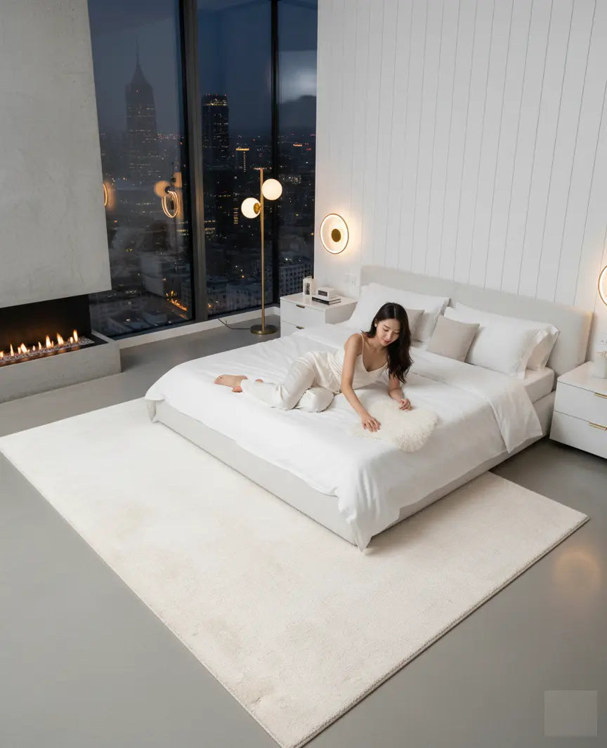 Cream Fluffy Soft Machine Washable Area Rug For Living Room, Bedroom