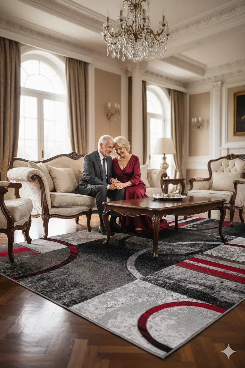 Adonis Currant Red Grey Area Rug