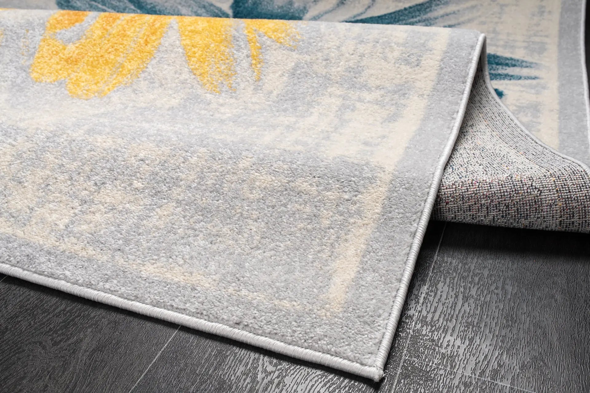 A unique modern, multicolor area rug to give a different perspective your home. Designed in a floral pattern over a neutral background. The natural pattern and vibrant colors are perfect for the active, contemporary space; these gorgeous yellow and teal/ turquoise flowers make this rug an absolute eye-catcher. The warm neutral tones of this rug make it easy to match with your existing décor.